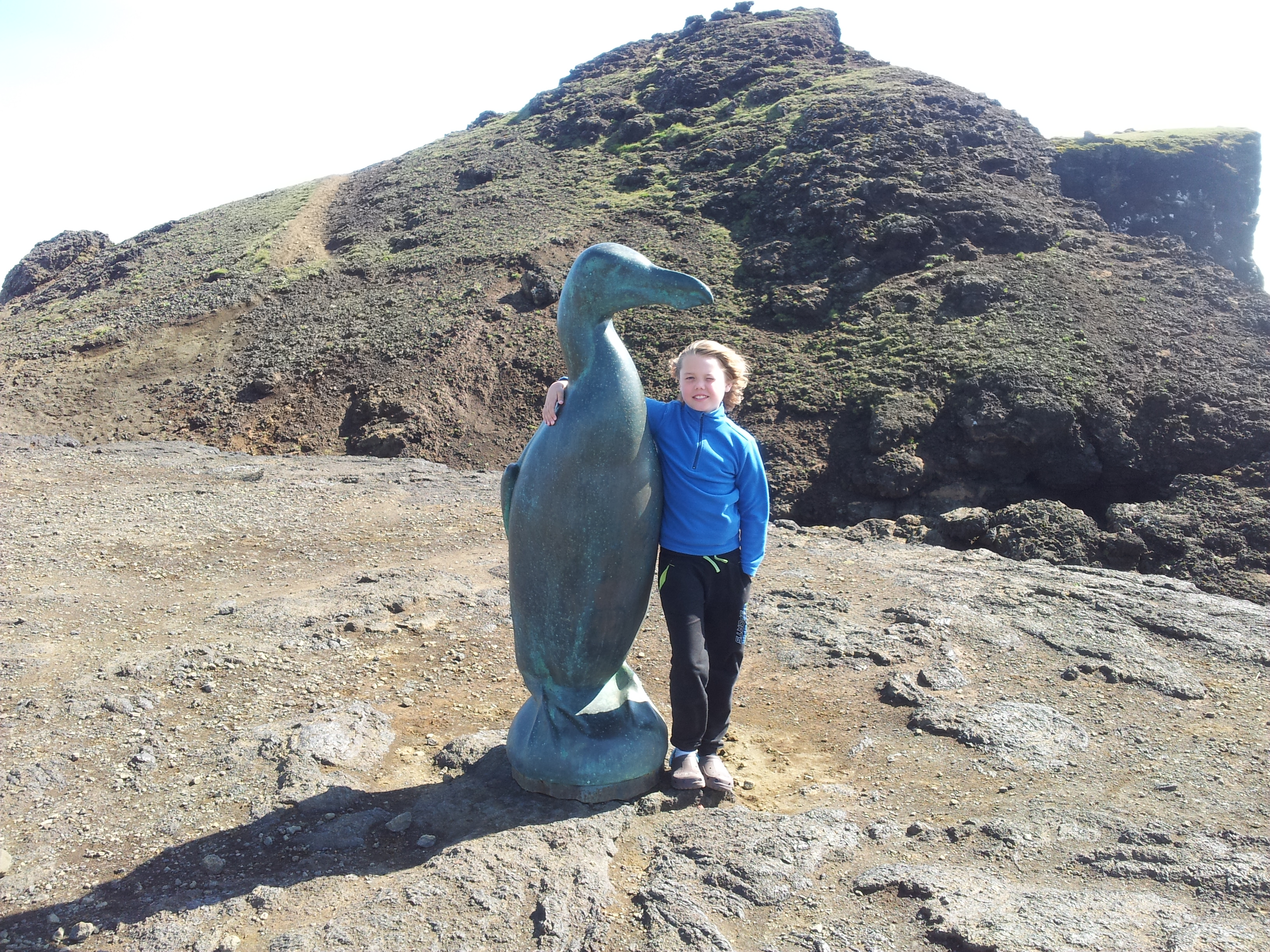 Der Morgen war sonnig aber immer noch sehr windig. Wir brachen auf weiter Richtung Südwesten, Reykjavik entgegen. Unser erstes Ziel sollte ein Geothermalkraftwerk auf der Halbinsel Reykjanes sein. Doch leider konnten wir es nur von außen betrachten da das Besucherzentrum geschlossen hatte. Es ist ein Unikat, das seine Turbinen direkt mit Meerwasser kühlt und aus etwa 2000 bis 3000 Metern Tiefe seine Energie aus über 300 Grad heißem Dampf gewinnt. Anschließend ging es zum Vogelfelsen Hafnaberg. Es waren etliche Möven in der ganzen Umgebung unterwegs und die Steilküste war überseht mit weißen Hinterlassenschaften der Vögel. Eine sehr schöne Vogelskulptur steht noch in unmittelbarer Nähe zur Küste. Sie hat eine stattliche Größe und lud zum „Kuscheln“ ein.