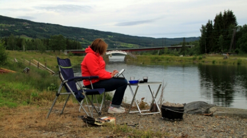 Die Sonne begrüßte uns bereits früh am Morgen. Wir beschlossen unsere Zelte nicht abzubrechen sondern alles stehen zu lassen und das Wetter zu nutzen. Bei strahlendem Sonnenschein sind wir gegen 10:00 Uhr in Richtung Peer Gynt Vegen aufgebrochen. Der Peer Gynt Vegen ist eine Hochlandpiste, die durch das Gundbrandsdalen führt, das Reich der Sagenfigur Peer Gynt. Wunderschöne Ausblicke über das Fjell und die umliegenden Berge bieten sich einem auf der unbefestigten Piste. Immer wieder tauchen Schafe oder auch Kühe mitten auf dem Weg auf und schauen einen irritiert an. Auch gehen sie nicht einfach so beiseite sondern blockieren einfach weiter die Straße bis man sie mit dem Auto fast berührt. Nach diesem Naturerlebnis sind wir in die kleine Stadt Lillehammer, die 1994 Austragungsort der Olympischen Winterspiele war, gefahren. Dort befindet sich das älteste Freilichtmuseum Skandinaviens. Die ersten historischen Häuser aus der Umgebung wurden bereits 1908 dorthin gebracht und wieder aufgebaut. Einige Häuser waren auch „bewohnt“. Es gibt auch einen neueren Teil. Da sind Gebäude aus dem letzten! Jahrhundert ausgestellt. U.a. einHaus aus den frühen Achtzigern, in dem ein nettes Mädchen eine „Home-Alone-Party“ feierte. Ich hatte sie erst gar nicht richtig verstanden, aber als ich dann das Chaos im ganzen Haus sah, war es klar. Michael Jackson an der Wand, Duran Duran aus dem Lautsprecher, norwegische Bravo auf dem Tisch. Auch das Styling des Mädchens mit breitem Gürtel übergoßem Pulli und Neonohring erinnerte an eigene frühere Zeiten. Die Kinder fanden das alles aber eher etwas langweilig. Zum Trost gab es dort aber Erdbeeren und Waffeln. Wir waren dann noch in der Innenstadt von Lilehammer zum obligatorischen Softeis essen. Echt niedlich diese kleine Stadt. Heute Abend gibt es Karsten’s berühmtes Do-Essen. Bestimmt wieder lecker!