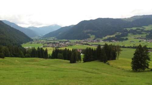 Die Schönwetterphase hält an! Nachdem wir die Kinder zu ihrem Pacouring-Kurs kurz begleitet haben, stand einer weiteren Tour mit den Rädern nichts im Weg. Von Kössen aus ging es zunächst im Urzeigersinn um das Unterberghorn herum in Richtung St. Johann. Immer an der Großache entlang führt der Radweg bis nach Kirchdorf. Hier verlassen wir die Route und folgen dem Mozart-Radwanderweg über Gasteig und Schwendt zurück nach Kössen.
