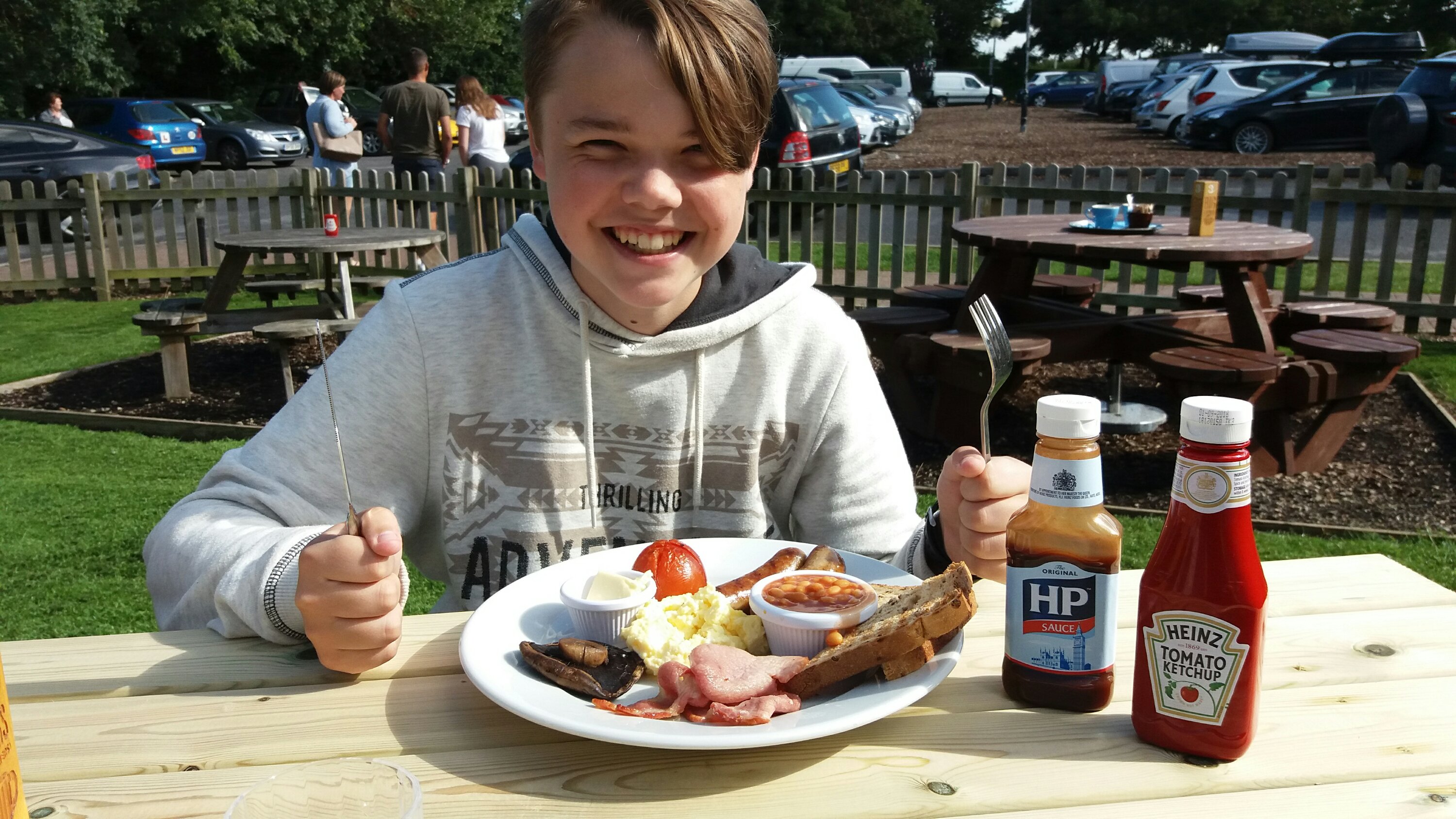 Heute haben wir uns auf den Weg ins Cornwall gemacht. Vor dem eigentlichen Fahrtantritt gab es aber noch ein Frühstück in einem nahe gelegenem Rasthof. Warum? Na, weil einer der Mitreißenden unbedingt mal ein original englisches Frühstück haben wollte!