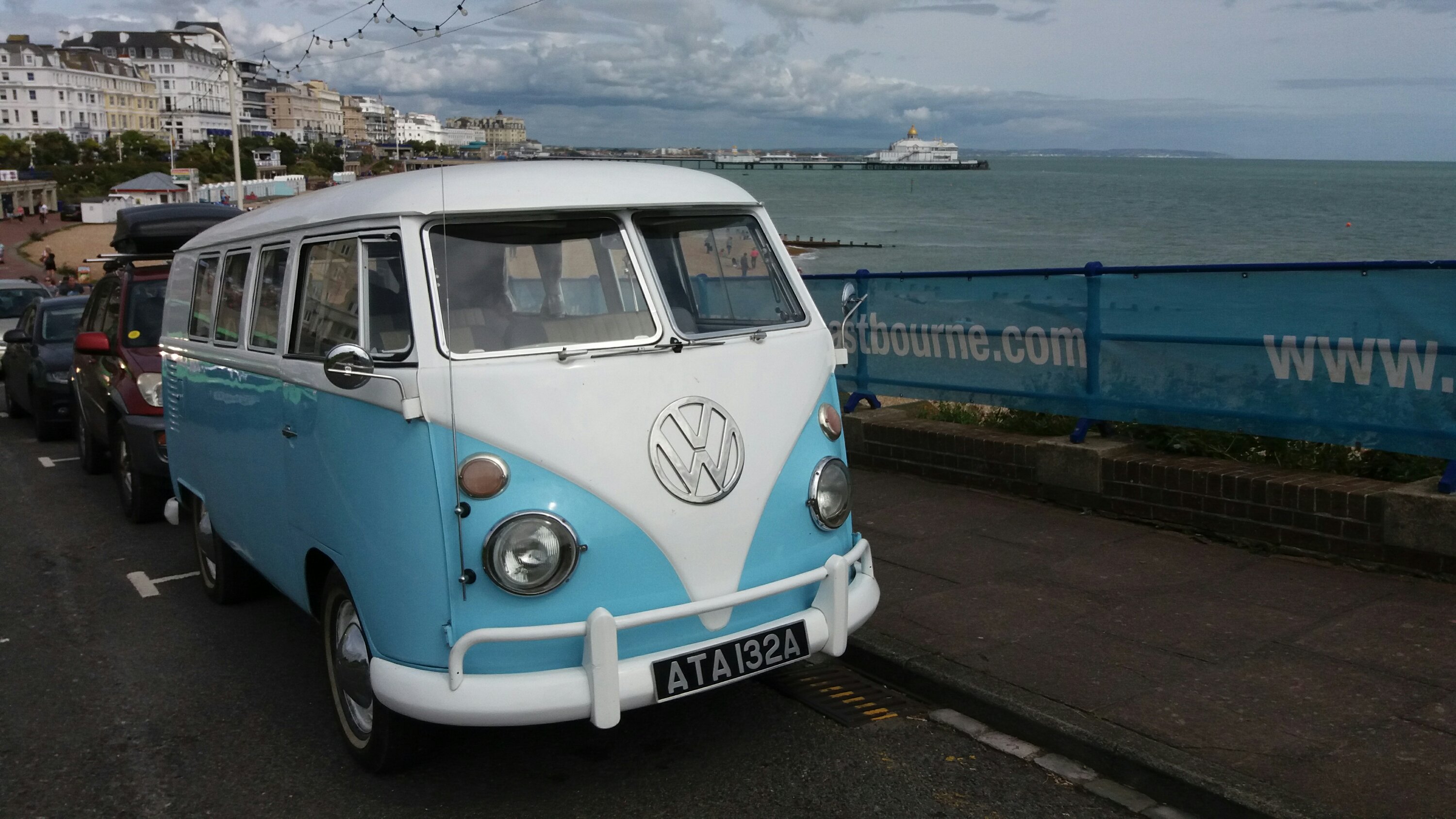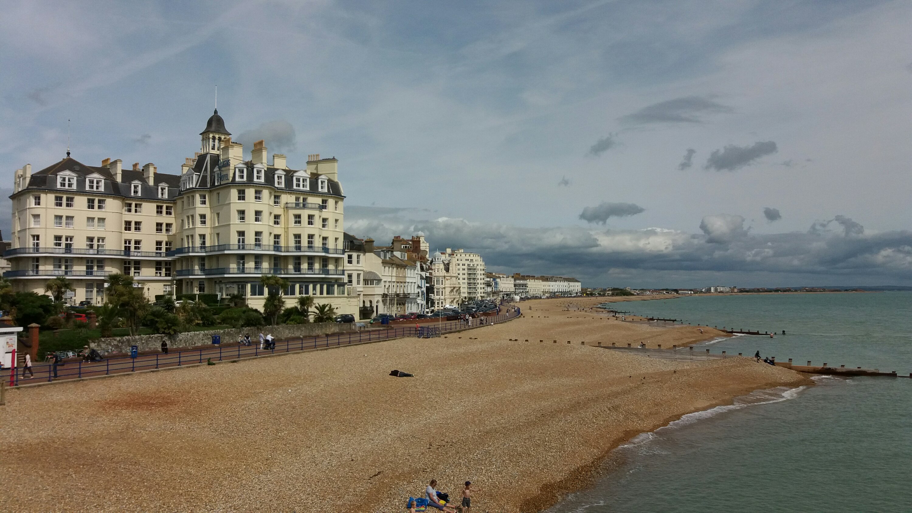 Heute strahlt die Sonne vom fast wolkenlosen Himmel. Die Kinder nehmen sich einen Tag frei und deshalb radeln die Eltern allein die Küste entlang nach Eastbourne. Zuerst frühstückten wir noch englisch ☺ in einem Cafe. Dabei leistete uns ein Africatwinfahrer Gesellschaft, den wir schon auf unserem Campingplatz gesehen hatten. Der Glückliche startete gerade erst seinen Urlaub und hat noch 2 Wochen vor sich. Eastbourne ist ein alter mondäner Badeort. Der Pier geht aufs Meer hinaus und typisch englisch mit Fastfoodbuden und Spielhallen gepflastert.