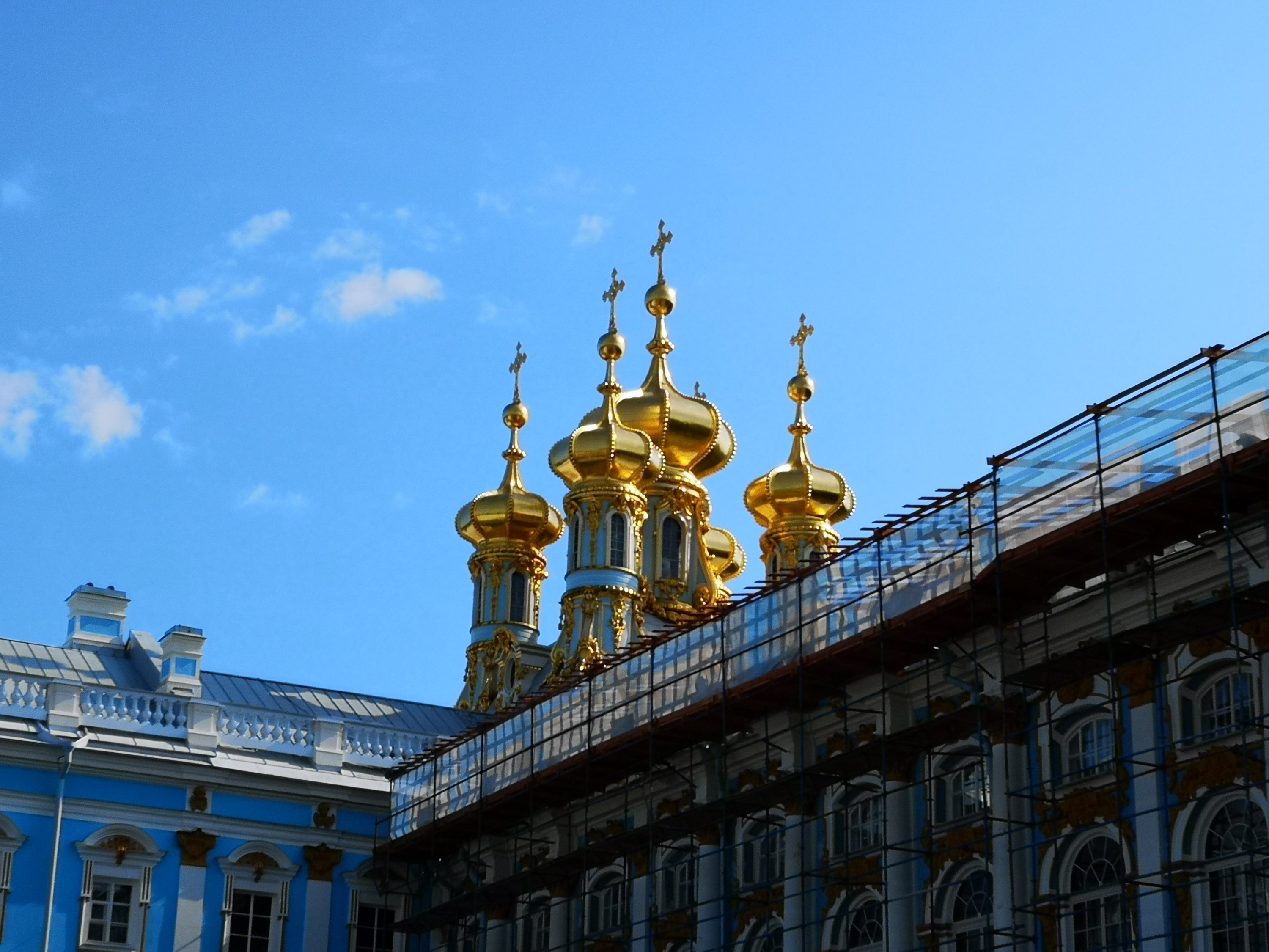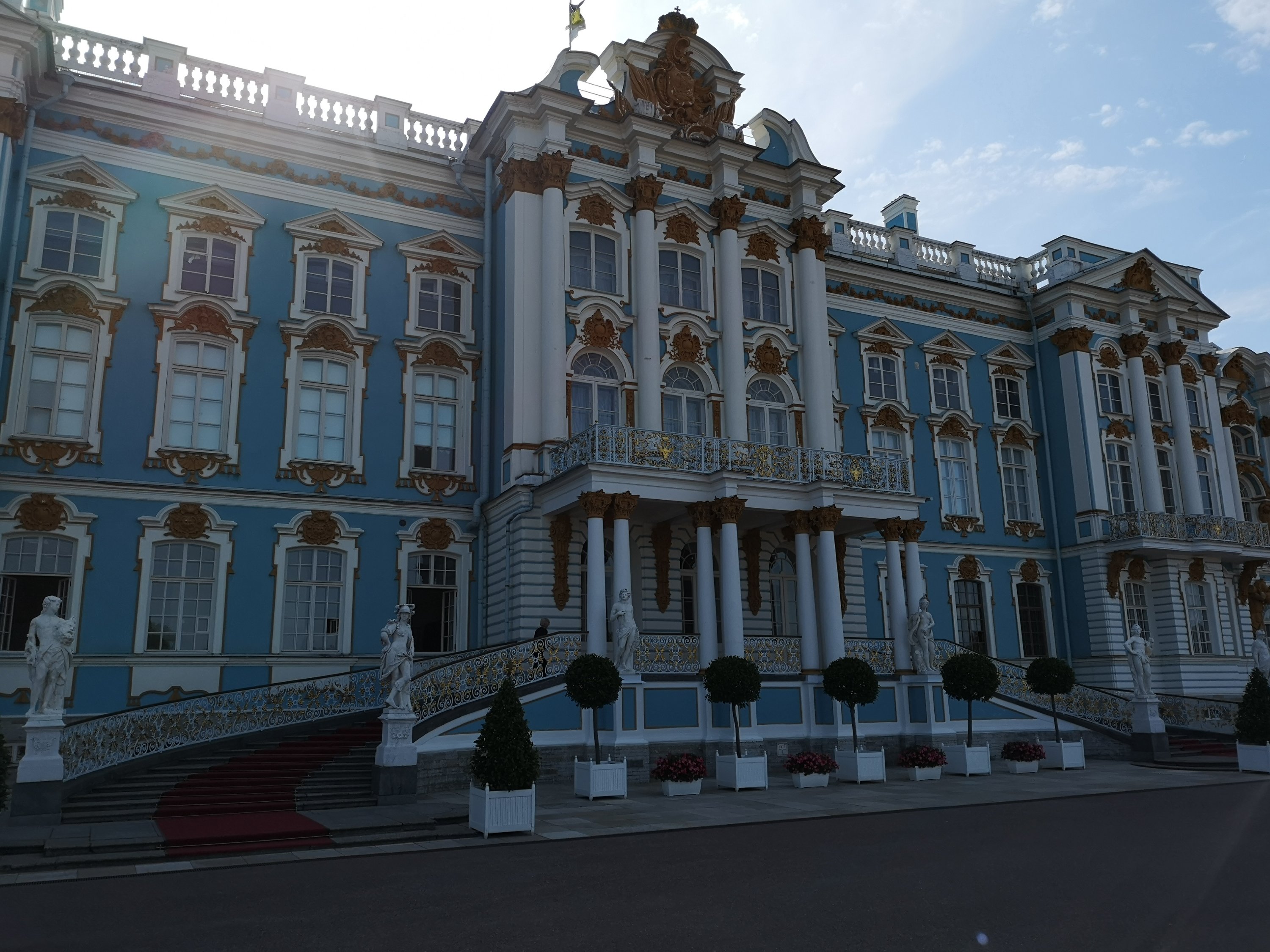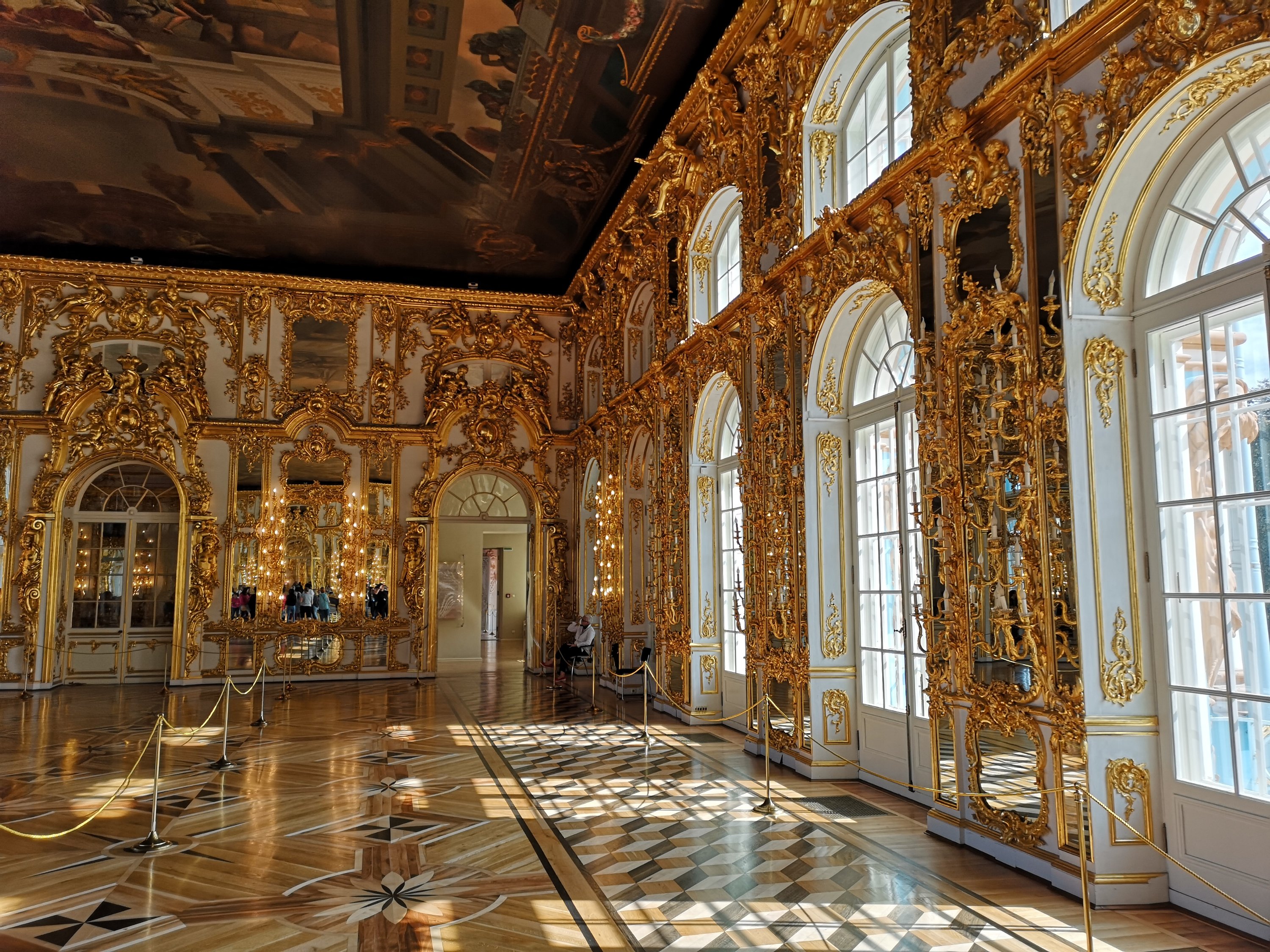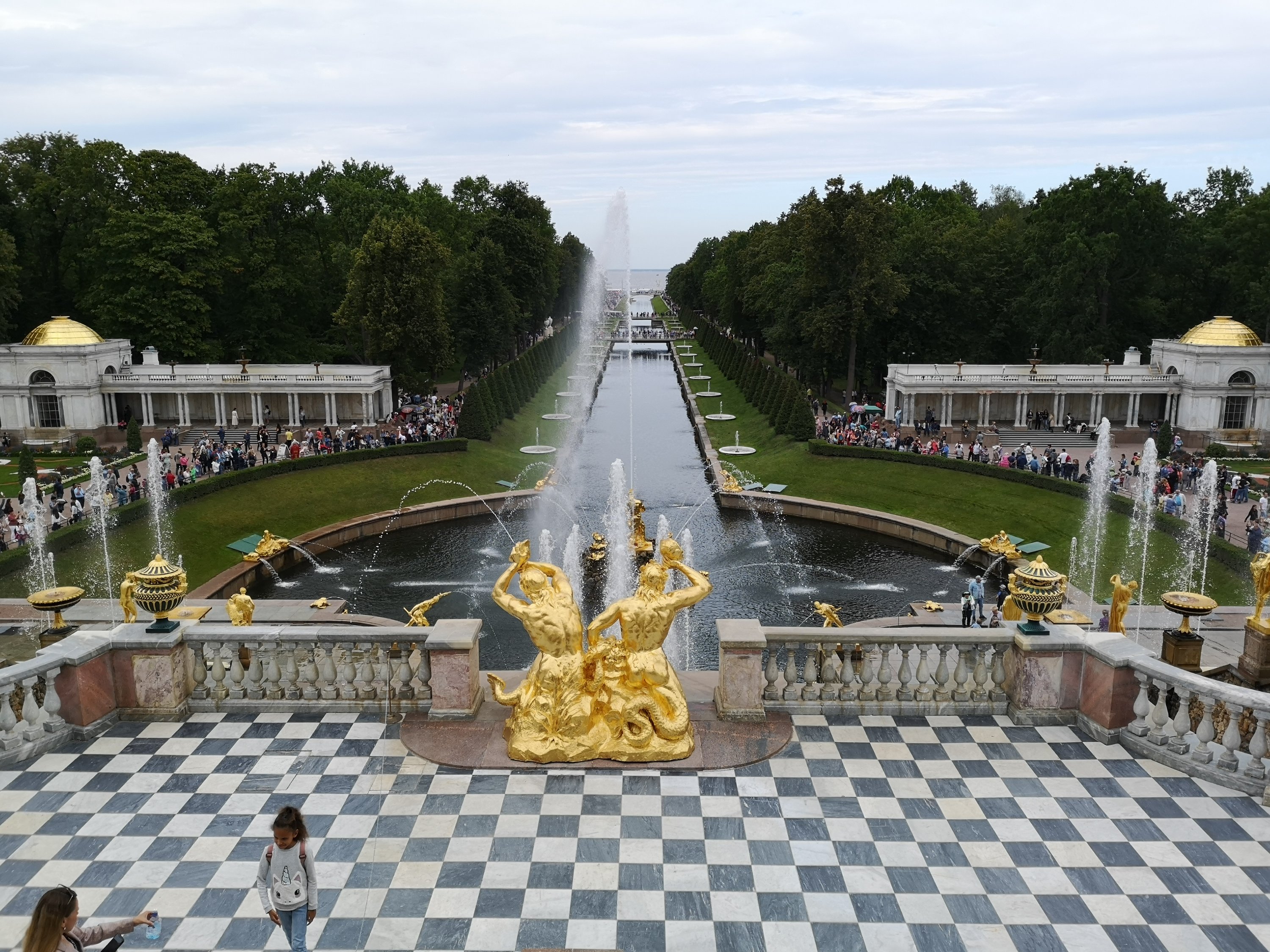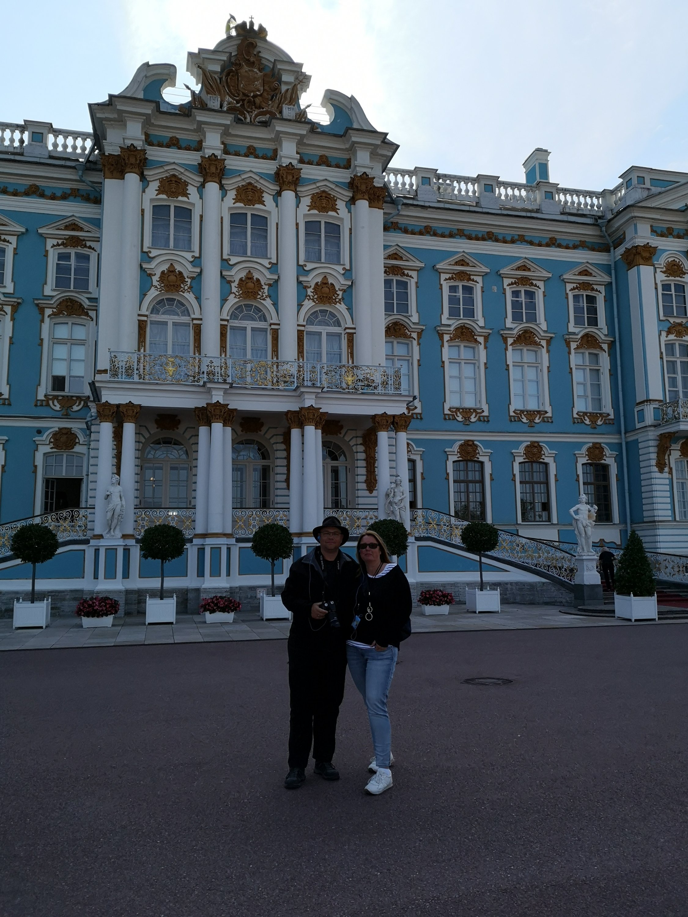 Gestern erreichte uns die Nachricht, dass unsere Führung im Katharinenpalast auf 10:00 vorverlegt wurde. Als Entschuldigung würde man uns aber ein Taxi zum Hotel schicken. Dazu muss man wissen, dass der Palast ca. 35 km außerhalb von St. Petersburg liegt. Na prima, da brauchten wir das Taxi nicht selbst zu bezahlen. Diesmal war der gebuchte Guide (Olga) dann auch da. Ohne Führung kommt man in den Palast auch nicht rein. Wir würden also durch die repräsentativen Räume des Palastes geführt und Olga versorgte uns mit ihrem russischen Englisch mit jeder Menge Informationen. Die Räume sind wirklich beeindruckend. Da wurde nicht gekleckert sondern geprotzt. Aber schön ist es trotzdem. Das Highlight ist natürlich das Bernsteinzimmer. Davon gibt es aber kein Foto. Fotografieren ist verboten und man wird strengstens überwacht. Nach dem Rundgang im Katherinenpalast wollten wir unbedingt noch den Garten von Schloss Peterhof sehen. Da dieser aber weitere 25 km entfernt ist, haben wir wieder ein Taxi genommen. Das ist so billig hier. Die Fahrt hat gerade mal ca. 15 Euro gekostet. Die Gärten vom Peterhof sind ne Sache für sich. Riesengroß und mit ganz vielen Wasserspielen. Was noch zu erwähnen ist : Es sind wahnsinnig viele Reisgruppen, meist Asiaten, unterwegs. Man muss überall anstehen und immer sind fremde Leute mit auf den Fotos. ? Aber so ist das nun mal zur Hauptreisezeit. Zurück nach St. Petersburg ging es dann mit dem Schnellboot. Das war vergleichsweise teuer aber trotzdem lohnend, weil man durch den Hafen mit den Industrieanlagen und Werften fährt. Auch haben wir 2 U-Boote und einige Kreuzfahrtschiffe gesehen. Dinner gab es in einem aserbaidschanischen Restaurant mit Tee und Lamm. Köstlich! Zu guter Letzt waren wir noch in der Bloody Mary Bar gegenüber unseres Hotels zu 2 Wodka.