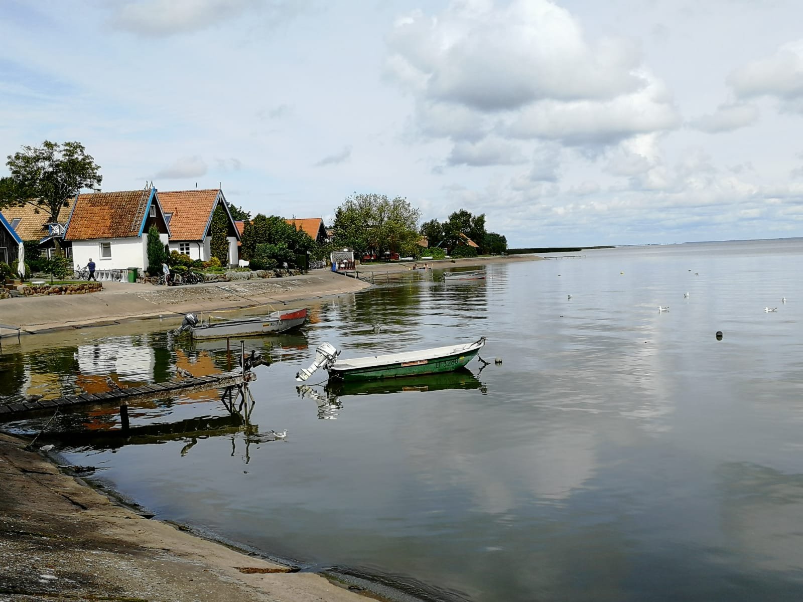 Die Nacht war kurz auf unserem provisorischen Stellplatz. Wir sind sehr spät angekommen und der Campingplatz in Nida war komplett ausgebucht. Wir haben dann die Nacht vorne am Parkplatz verbracht und sind um 7:30 in Richtung Ort aufgebrochen um zu frühstücken. Mit Brötchen und Kaffee haben wir dann idyllisch den Tag am Hafen eingeläutet.