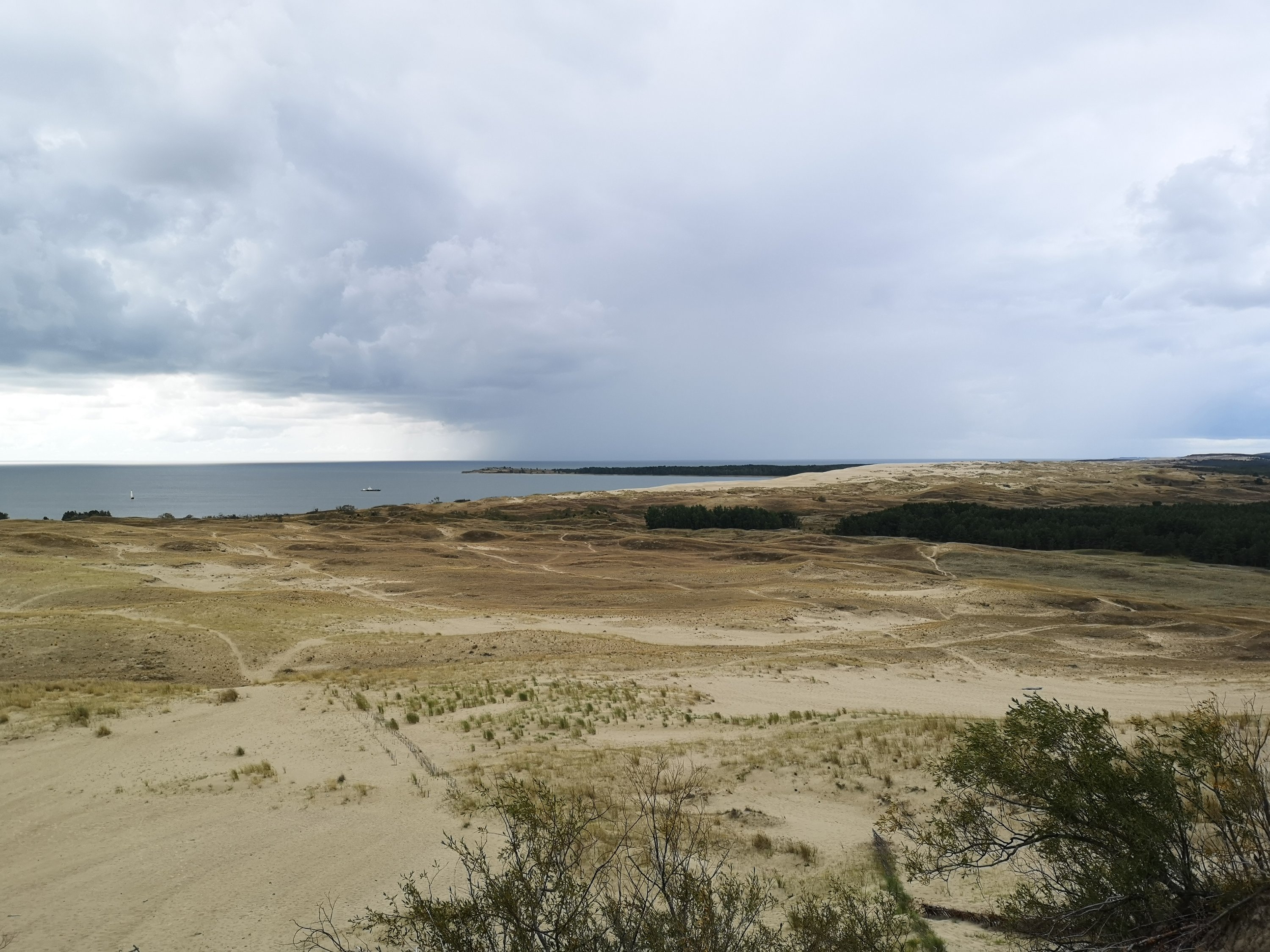 Die große Parnidden Düne liegt unweit von Nida entfernt. Wir haben uns östlich über einen Wanderwege auf den Weg hoch auf die Düne gemacht. Man sollte strengstens auf den ausgezeichneten Wegen bleiben, den das Naturschutzgebiet ist sehr empfindlich und Spuren abseits der Wege sind lange sichtbar. Belohnt wurden wir mit einer tollen Aussicht auf das Haff und den russischen Teil der Närung.