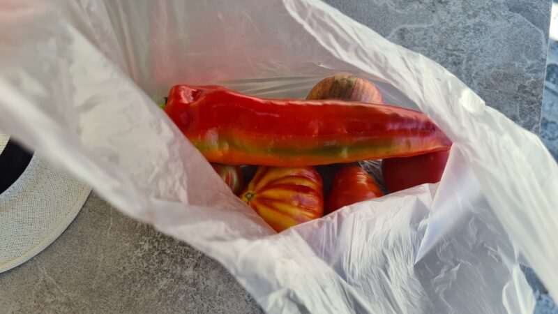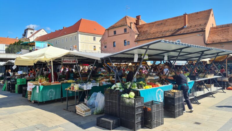 Nachdem wir gepackt hatten, machten wir uns zunächst auf den Weg nach Maribor. Dort haben wir uns die Altstadt angesehen, die derzeit an vielen Stellen renoviert und autofrei umgestaltet wird. Auf dem Markt haben wir uns mit frischen Tomaten, Knoblauch und Paprika versorgt (dazu später mehr). Auf dem Rückweg zum Auto haben wir uns dann noch die älteste (> 400 Jahre) Weinrebe der Erde angesehen, die immer noch ca. 50 kg Früchte pro Jahr Trägt. Die Traube nennt sich „Blauer Kölner“.