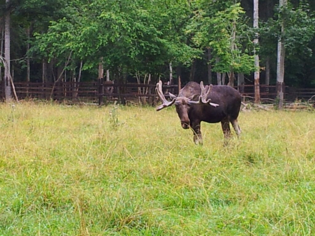 Neben Elchen, Luchsen, einem Bären und anderen heimischen Tierarten lädt der Park auch zum Spazieren ein. Leider hat es aber bei unserem Besuch zwischendurch angefangen zu regnen.